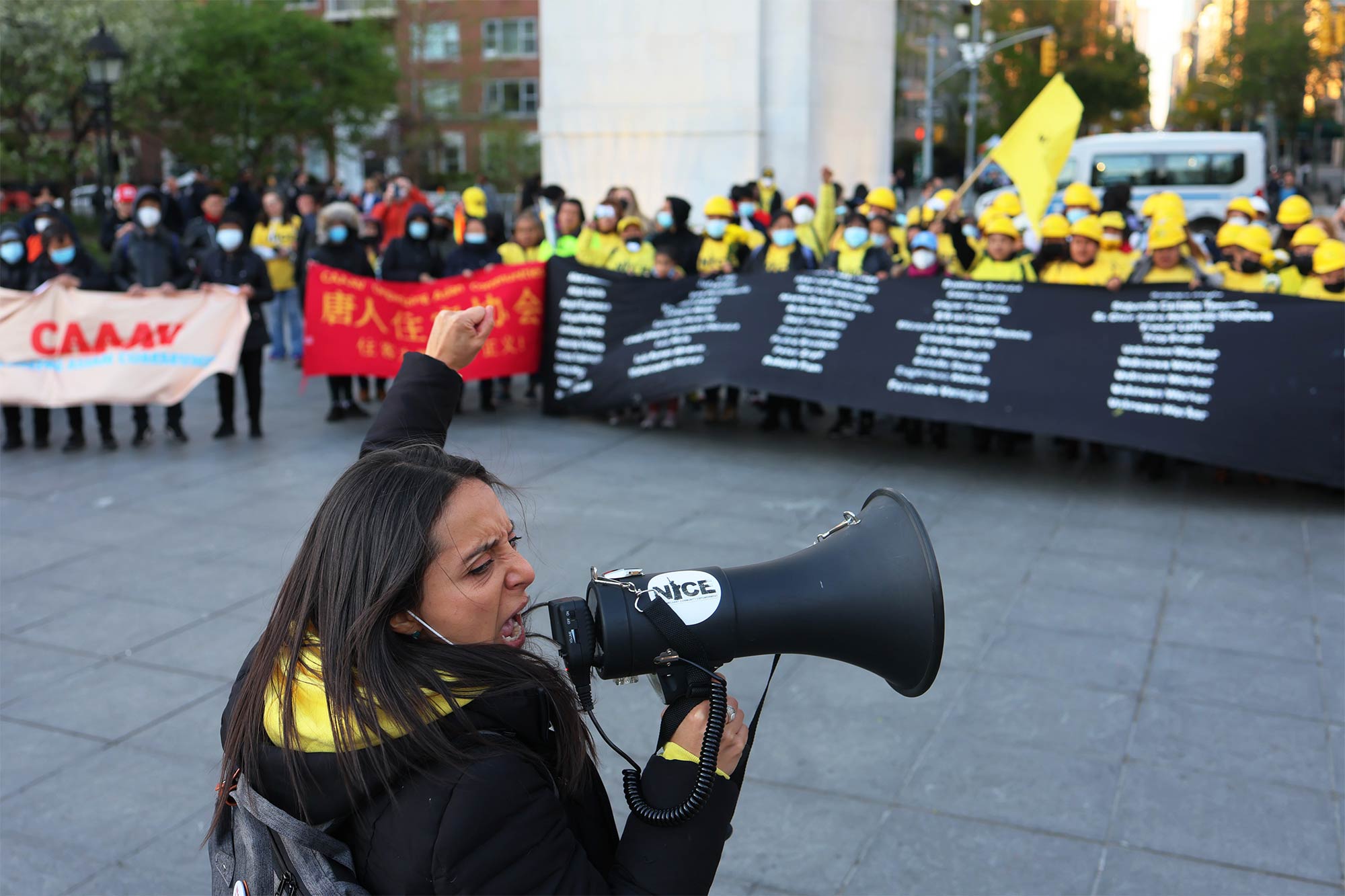 Immigrant construction workers hold Fallen Worker Day March in New York City. Source: Getty